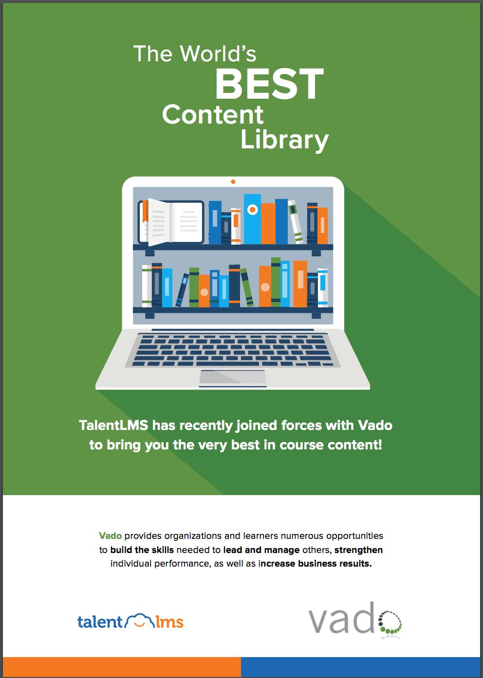 Now, TalentLMS has partnered with Vado, a leading training content provider specializing in bite-sized, chunked learning courses for the modern enterprise, to make it easier than ever to find the right learning material for your corporate training needs.