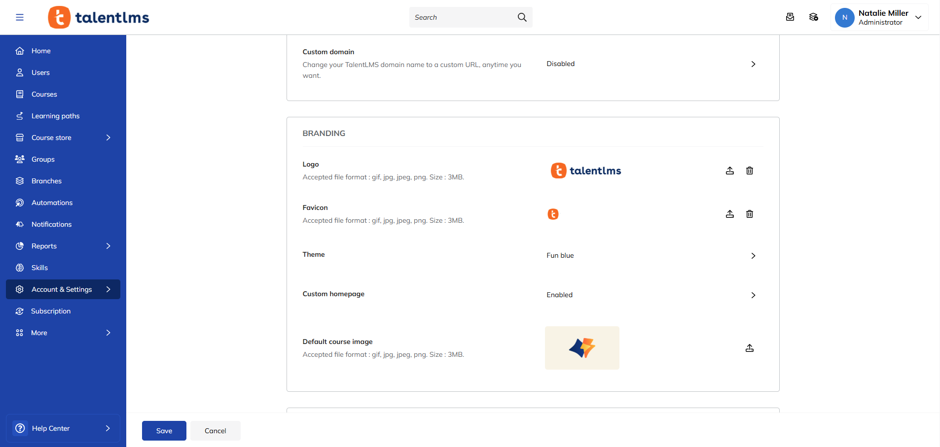 A company should be able to brand its LMS with its colors and logo, create custom dashboards for different departments or branches, and set up unique learning paths for various job roles.