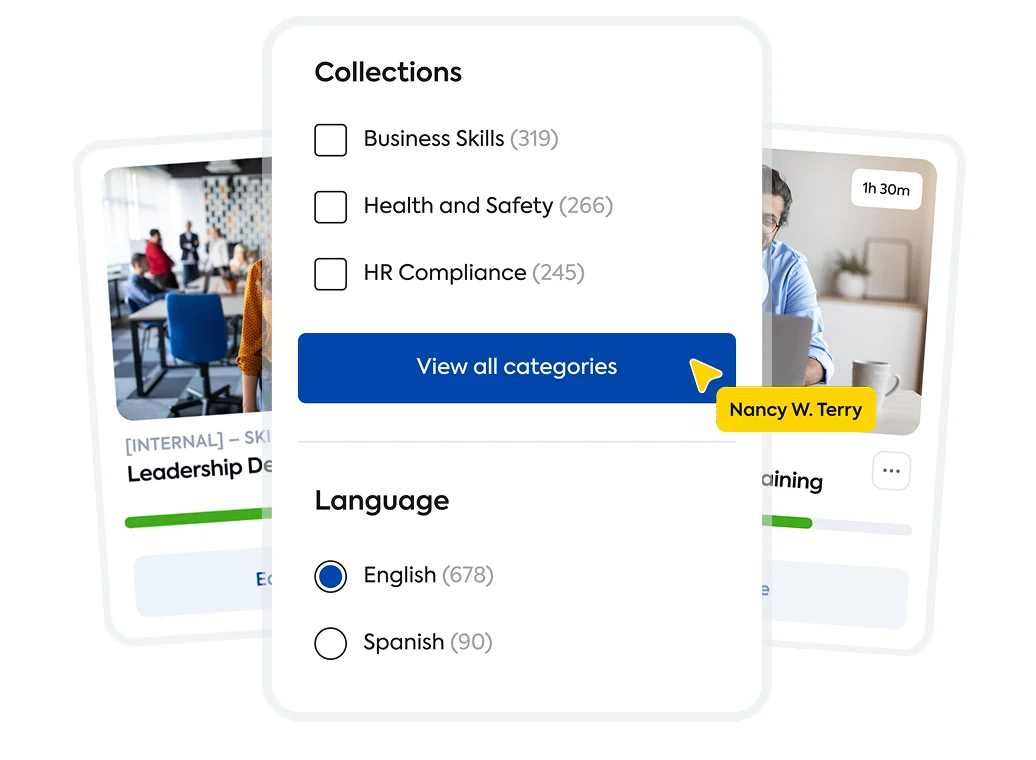 TalentLibrary™ gives you instant access to 1,000+ expertly-curated courses on the skills that matter — soft skills, leadership, compliance, and more. Always up to date and ready to launch.